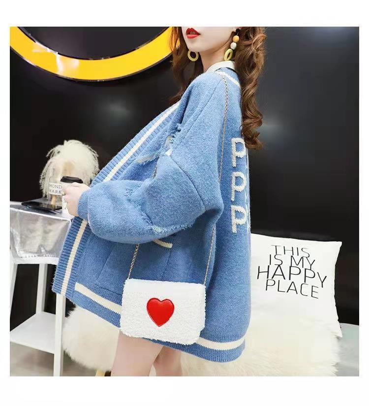 秋冬服の新型韓国版のゆったりしたアルファベットのファッションは厚いニットの中の長いセーターのカーディガンの秋冬のコートの女性の潮をプラスします。
