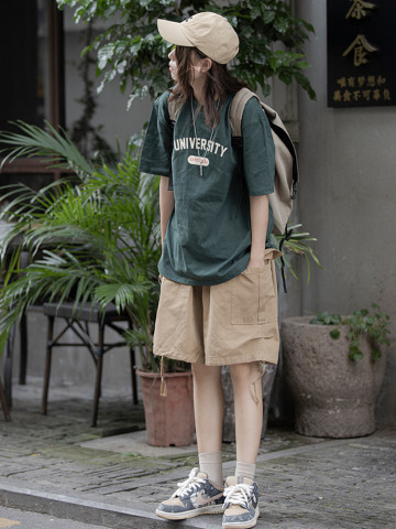 夏の新型日系潮牌カジュアルスーツ男女bfゆるいカジュアルtシャツパンツ2点セット