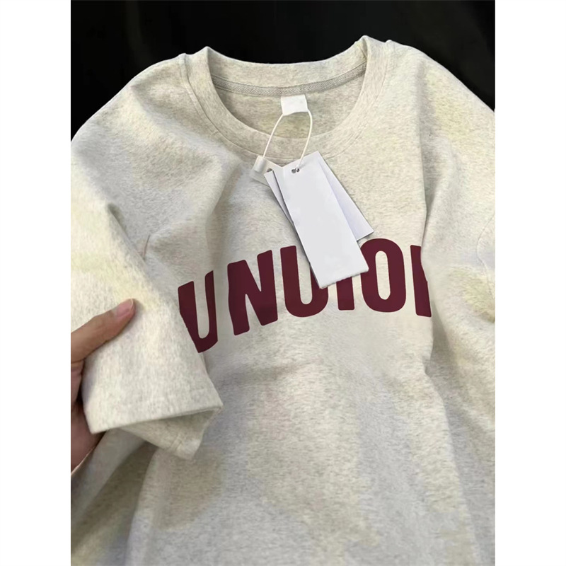 新純綿半袖アルファベットtシャツ女性夏ゆるいoversize学院風カジュアルファッション百合上着