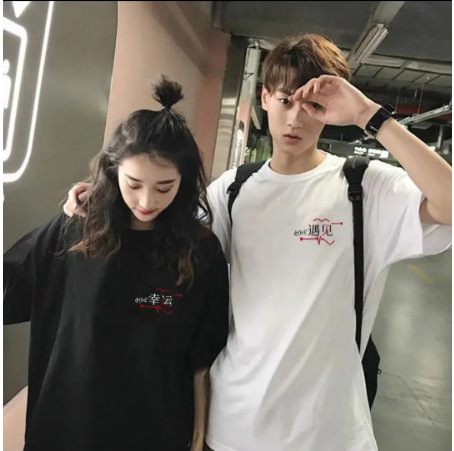 純綿のカップルは丸首のファッション的な夏のtシャツの女性の潮のブランドの半袖のネットの赤いゆったりしている上着の学生の娘の蜜を詰めて潮を詰めます。