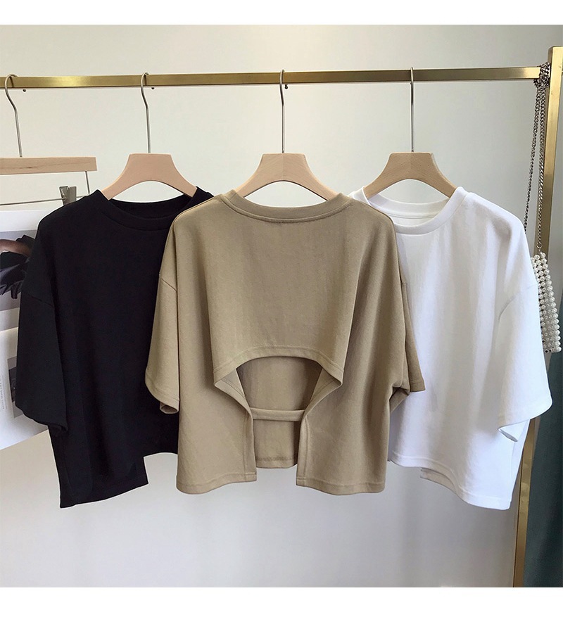 ファッションの正肩の純色の背の短いtシャツの女性のギャルの風の韓国版の夏の丸首のゆったりした半袖の上着の女性の潮