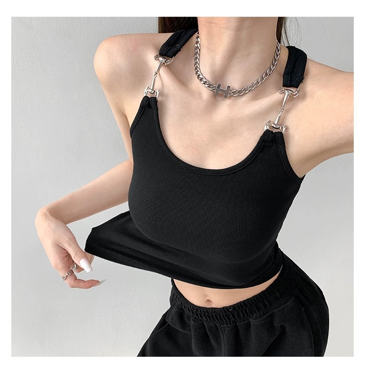 スレッドキャミソール女性の夏の甘辛い風の外に短いuネックの上着を着ます。