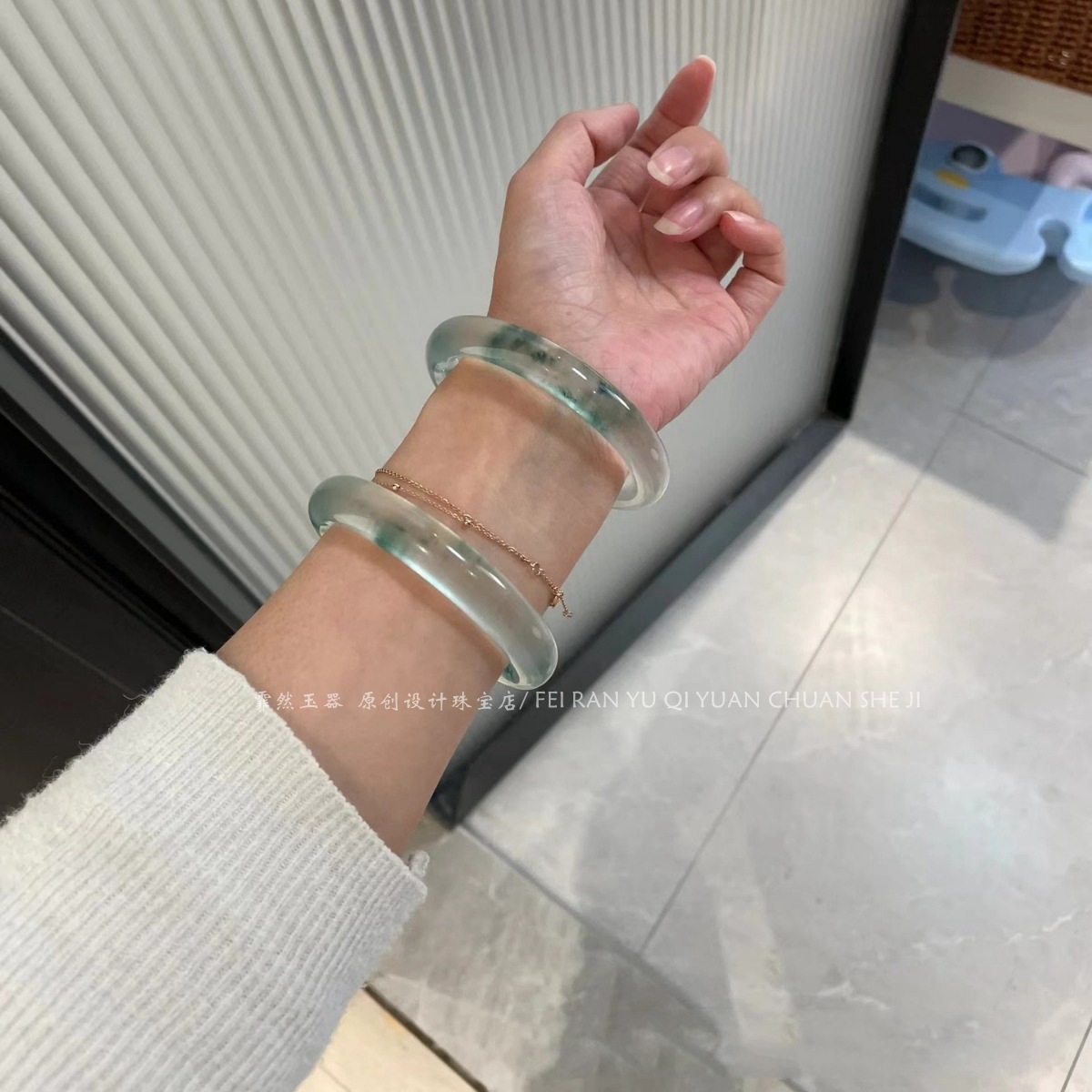 楊冪と同じスタイル!氷カルセドニー白月光ブレスレット水泡翡翠ブレスレット水泡翡翠英岩翡翠ブレスレットギフト
