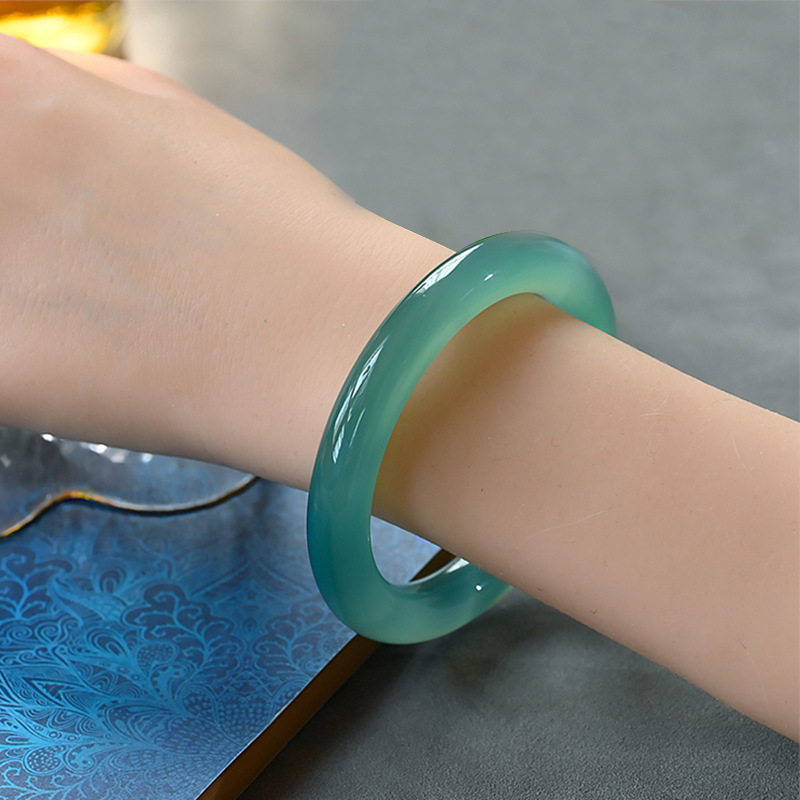 天然瑪瑙ブレスレットハイアイスハーフマウンテンカルセドニーブレスレットグラデーションシアンブレスレットオイルシアンエメラルドブレスレット女性用