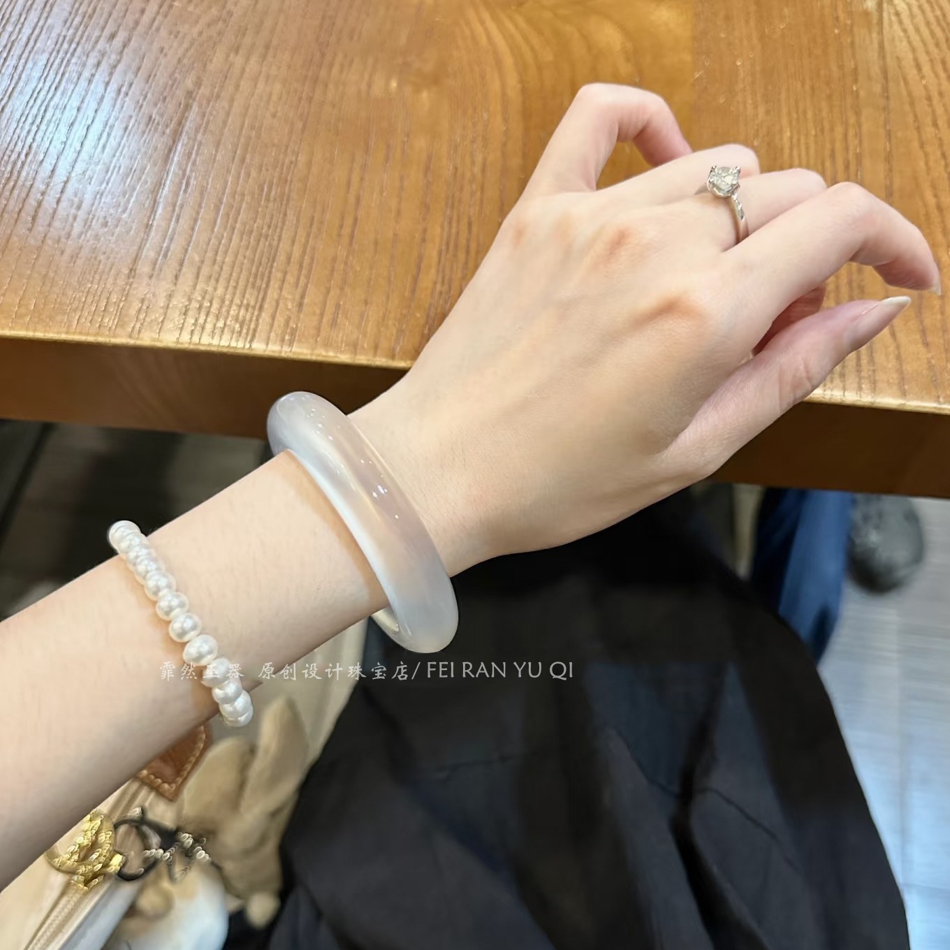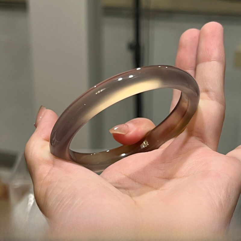 スモークグレーブレスレット天然瑪瑙カルセドニーブレスレットアイスグレー翡翠ブレスレット若い女性フラットストリップガール