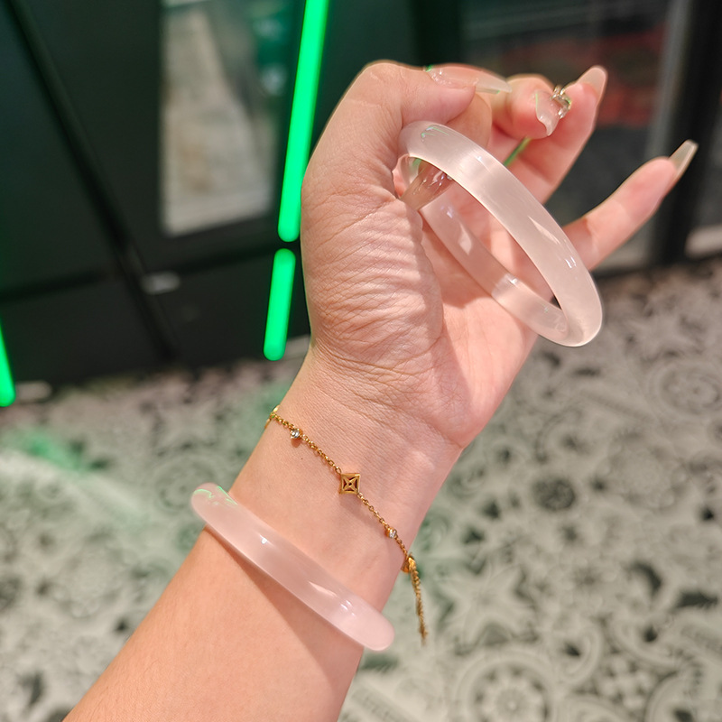 女性用ホワイトムーンライトブレスレット、蓮根ピンクハイアイスガールピンク翡翠ブレスレット、カルセドニーグレープフルーツピンクキャットアイ効果プリンセスブレスレット