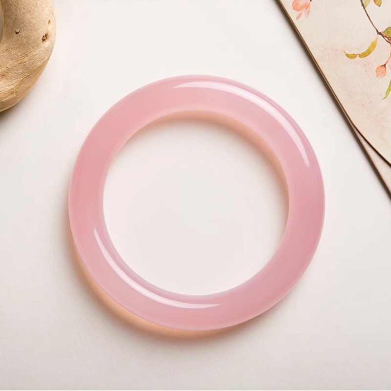ブラジル産天然ライトピンクカルセドニーブレスレットアイス種類桃の花瑪瑙太い丸い女性用ストロベリーパウダーハイビスカス翡翠ブレスレット