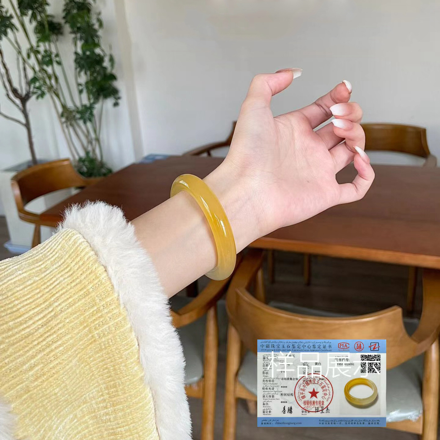 天然金糸玉のブレスレットの玉の腕輪の女性の半分の山の半分の水の桂の花は黄龍玉の腕輪の彼女のお母さんのプレゼントを作ります。