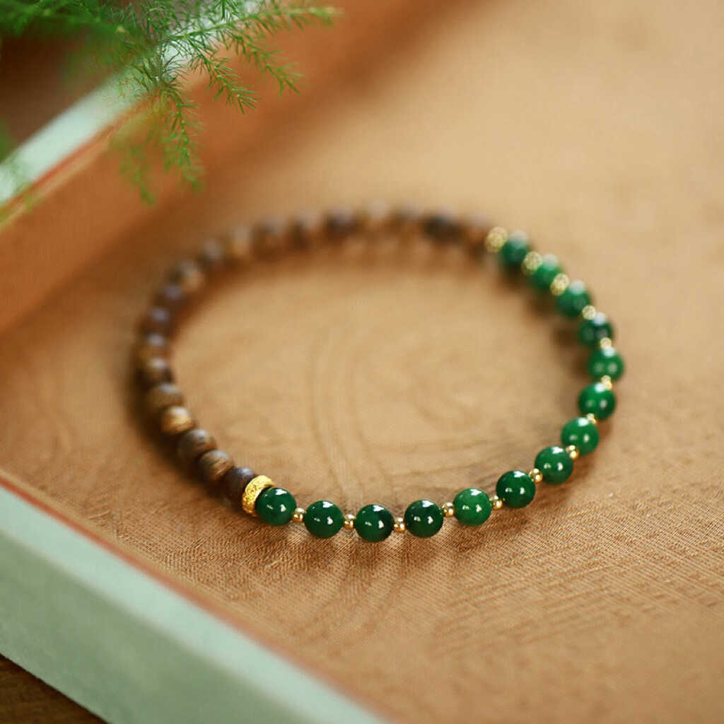 陽緑乾青翡翠丸玉と沈香小粒玉のブレスレット、中国風小衆単円レトロブレスレット卸売