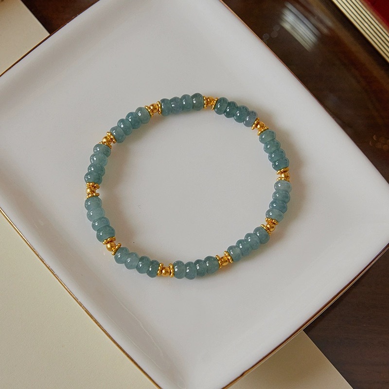 天然Aグレードブルーウォーター翡翠ブレスレット、新しい中国風の軽い豪華な気質の積み重ねブレスレット、ニッチデザイン、ライブブロードキャスト供給