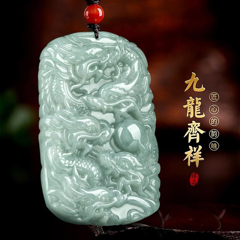 翡翠のペンダント九竜玉はミャンマーのA商品の竜のブランドの男性の玉の玉佩の両面の彫刻の肖竜にぶら下がって友達を送ります。