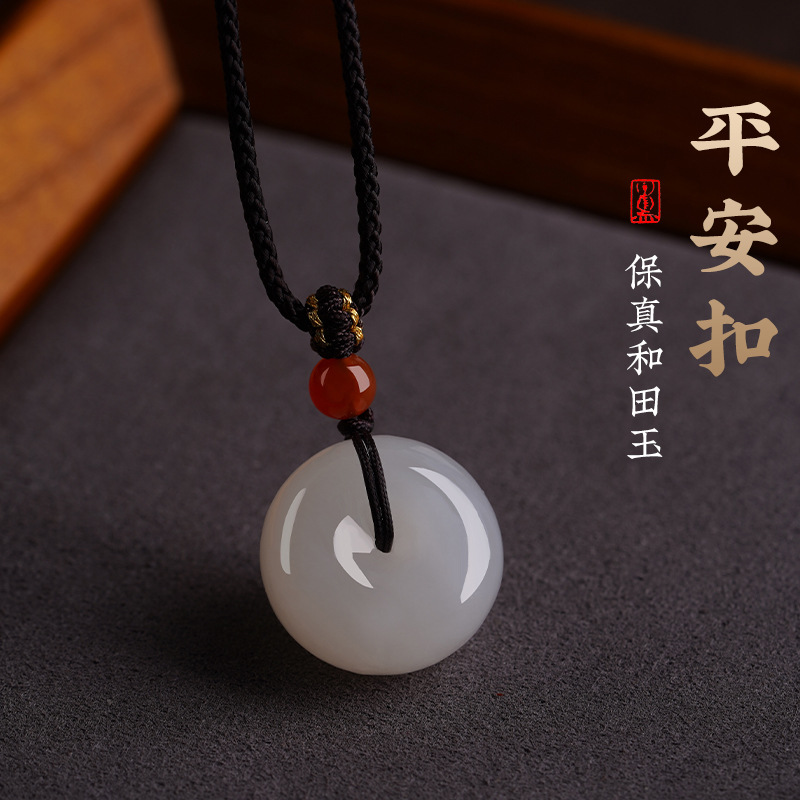 保真天然和田玉平安ボタンペンダント男玉ネックレス女毛衣チェーン玉佩玉ペンダントプレゼント