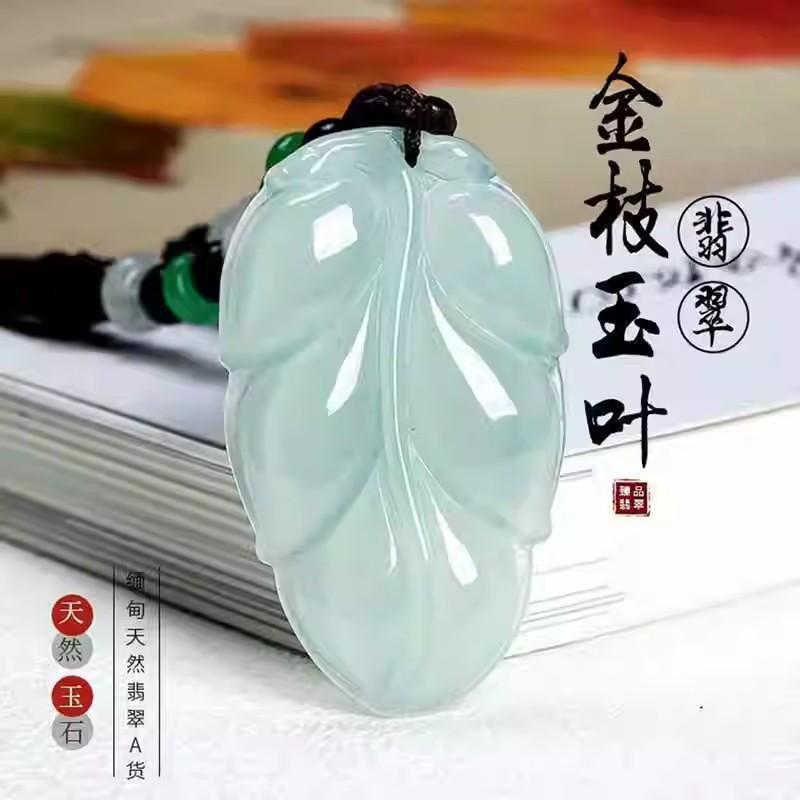 天然翡翠氷モチモチ種金枝玉葉ペンダント樹葉玉ネックレス男女金誕生日プレゼント玉セーターチェーン