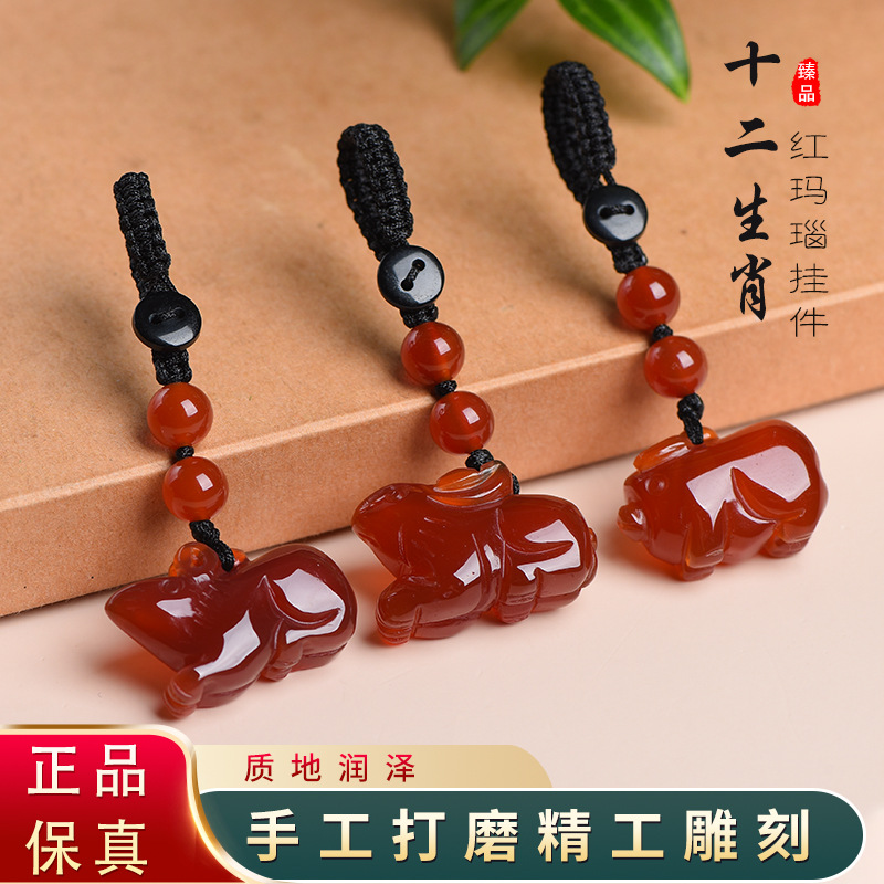 天然紅瑪瑙の生肖の本命年のペンダントのネズミの牛虎のウサギの竜蛇の馬の羊のサルのニワトリの犬の豚のネックレスのキーホルダー