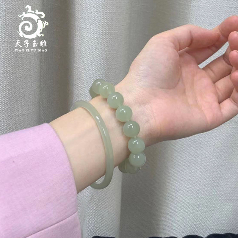 新疆和田玉晴水手串女性天然玉氷底湖水緑男性円珠玉ブレスレットに証明書が添付されています。