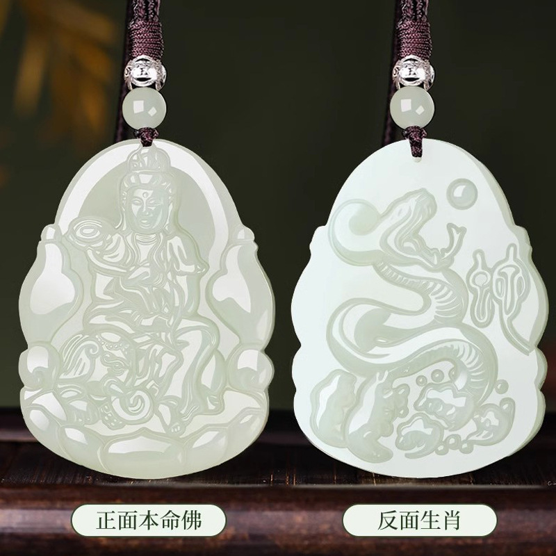 天然和田玉十二生肖本命仏ペンダント観音普賢菩薩女形守護神符男士玉佩