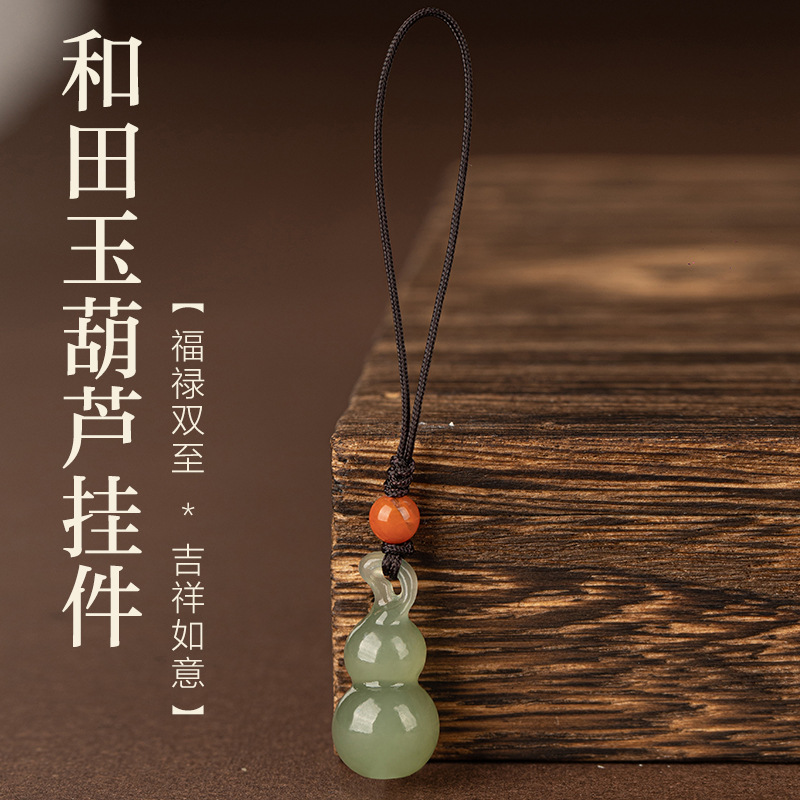 保真天然和田玉ひょうたんキーホルダーペンダント福禄葫芦チェーン平安キーペンダント男女ストラップ