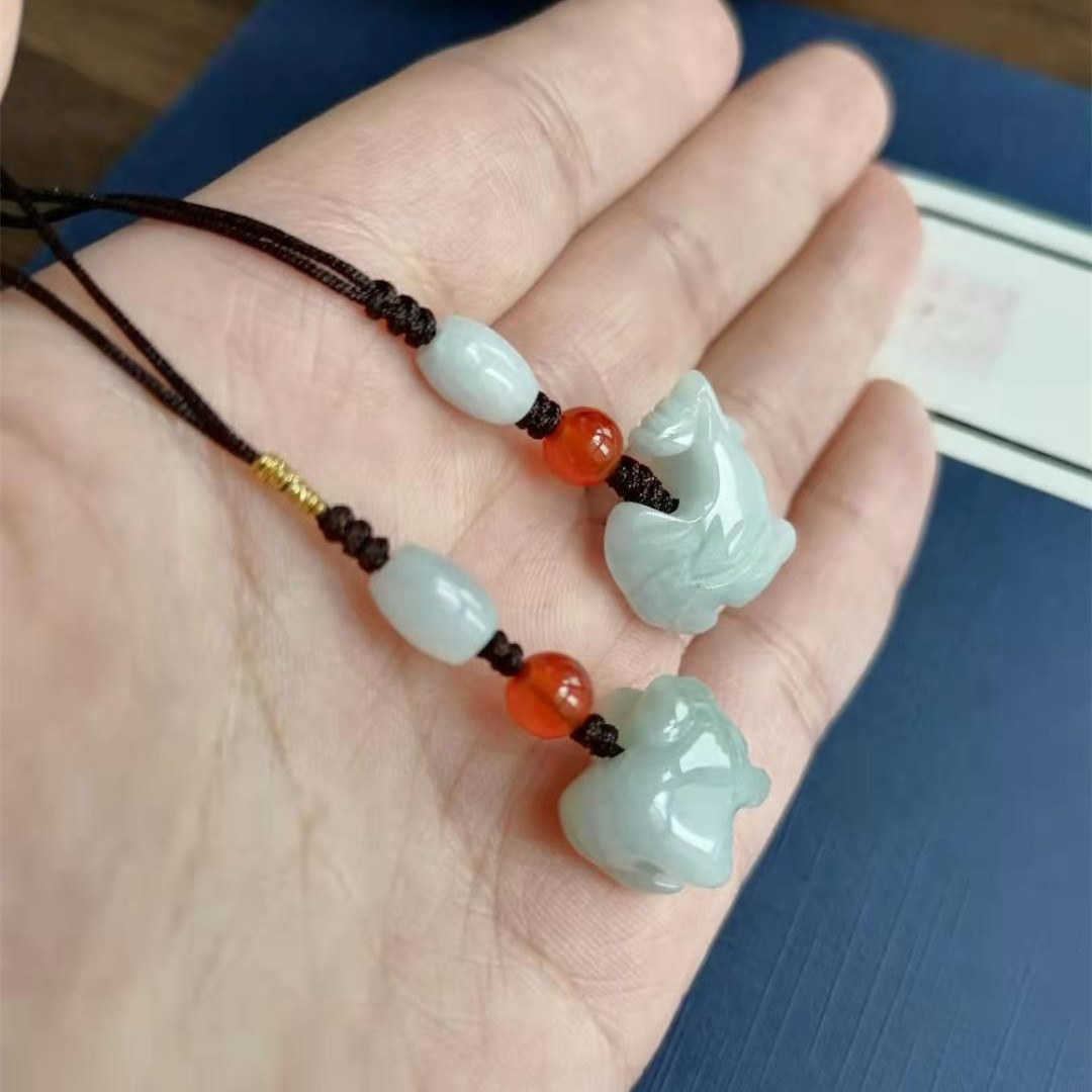 天然翡翠A品生肖鼠牛虎兎龍蛇馬羊猿鶏犬豚ペンダントキーホルダー