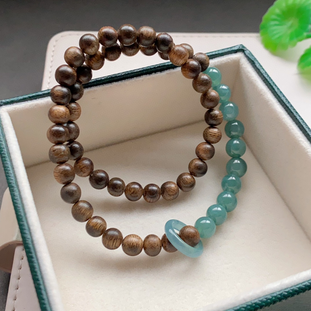 天然翡翠a商品藍水双輪ブレスレットクック手串男女指輪リングカップルプレゼント