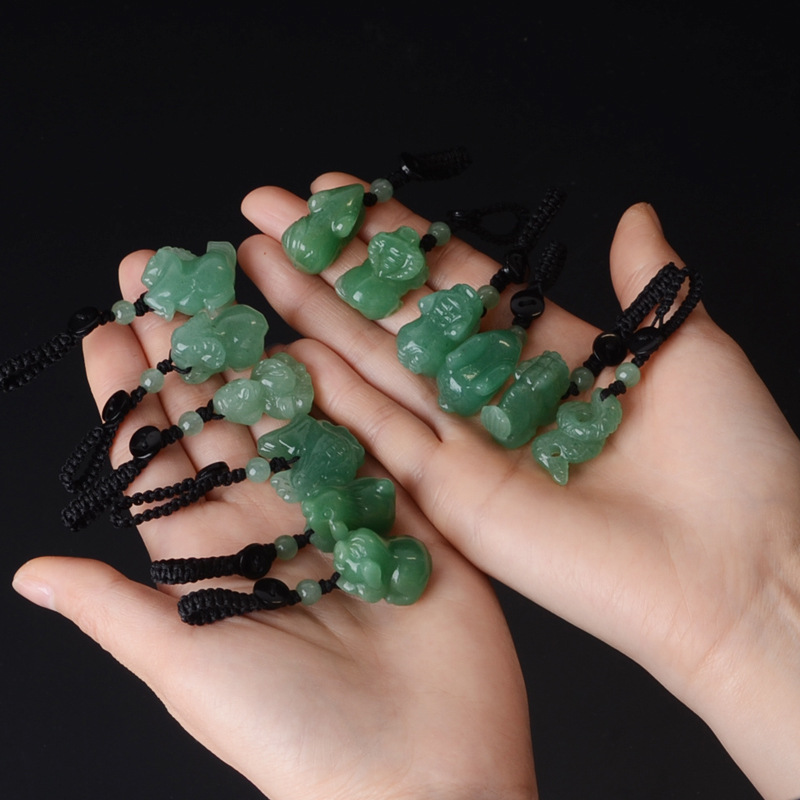 天然緑水晶十二生肖立体ペンダント鼠牛虎兎龍蛇馬羊猿鶏犬豚キーホルダー
