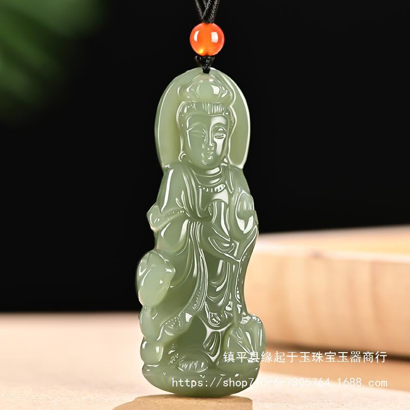 和田玉観音ペンダント男性玉蓮観音菩薩玉ペンダント玉佩項ペンダント両面彫刻工