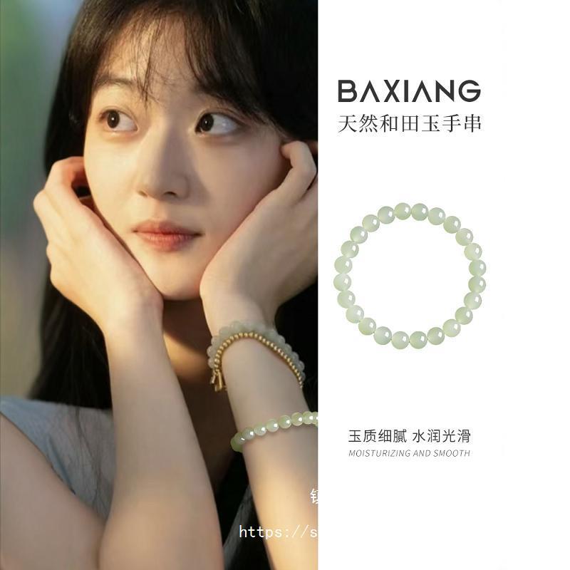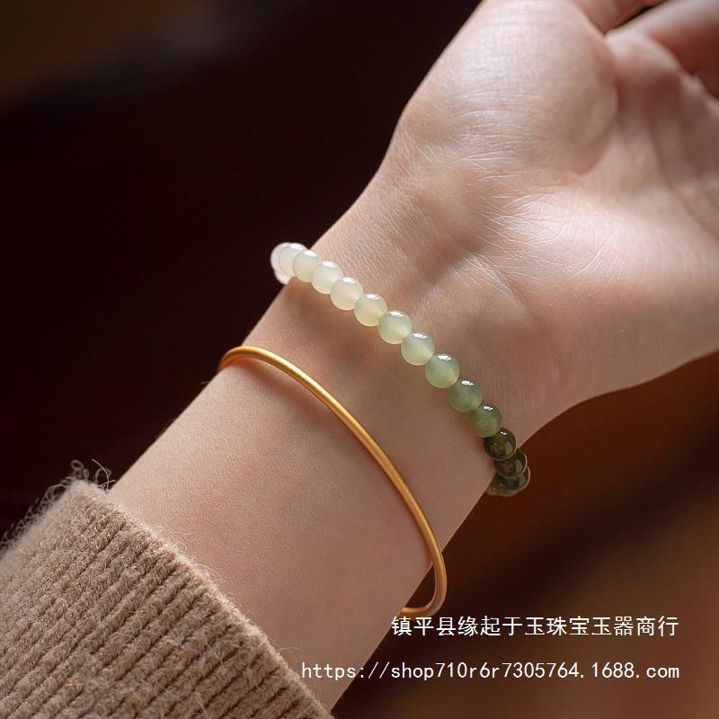 天然保真晴水料和田玉ブレスレット女性グラデーション素輪玉手串小衆新中国式手串プレゼント