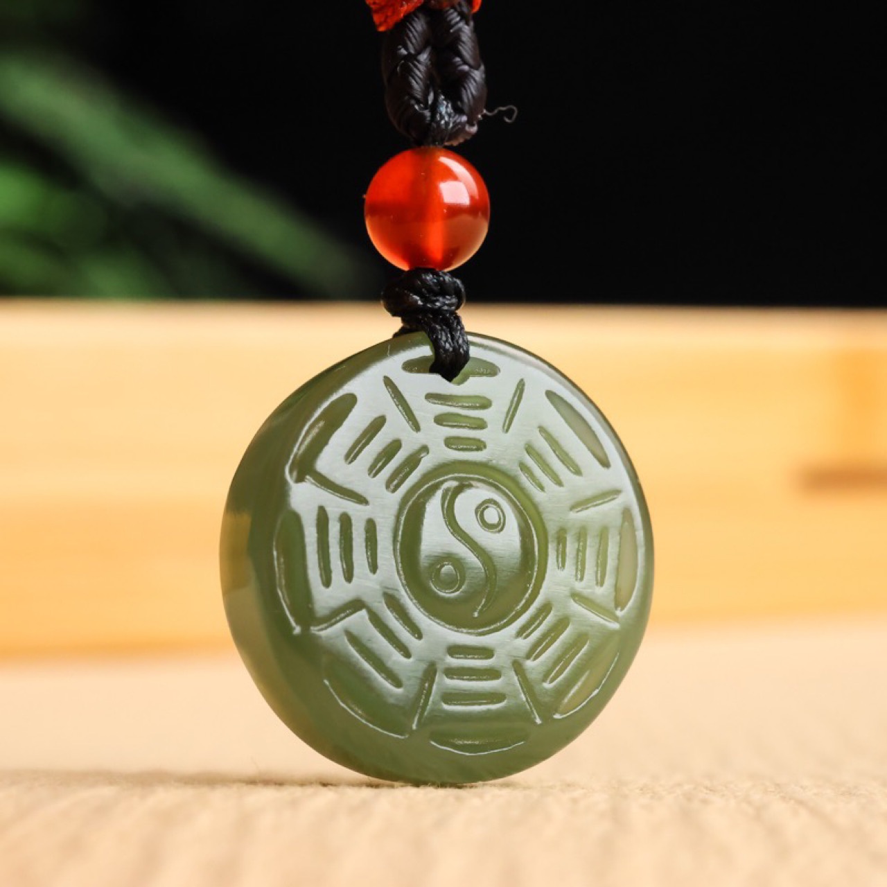 天然新疆和田玉八卦ペンダント玉佩円牌晴水色太極八卦玉ペンダント男女プレゼント