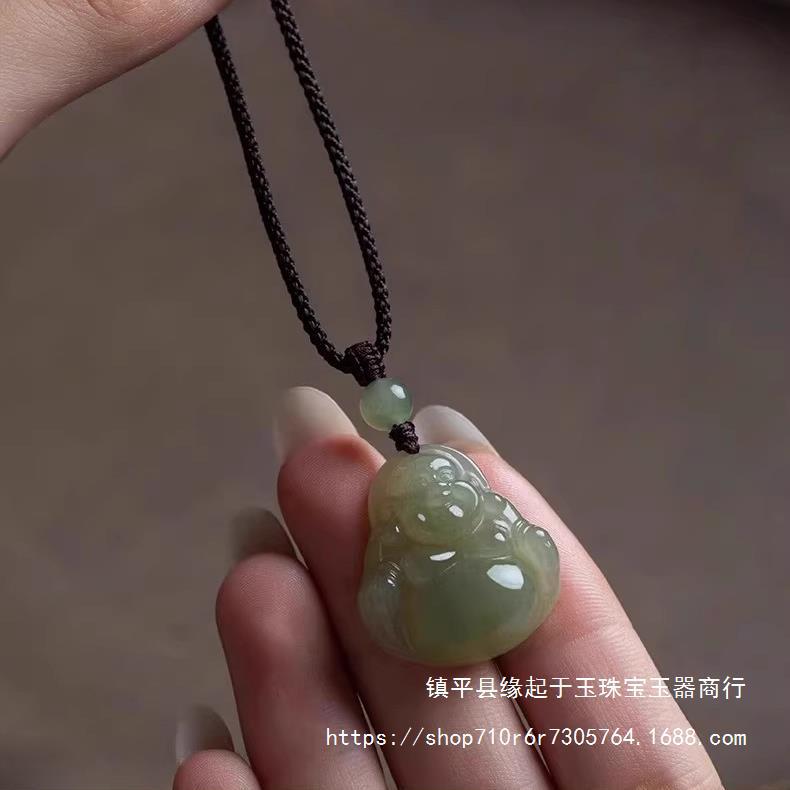 新疆和田玉晴水玉仏ペンダント天然玉大腹笑仏弥勒仏ネックレスペンダント