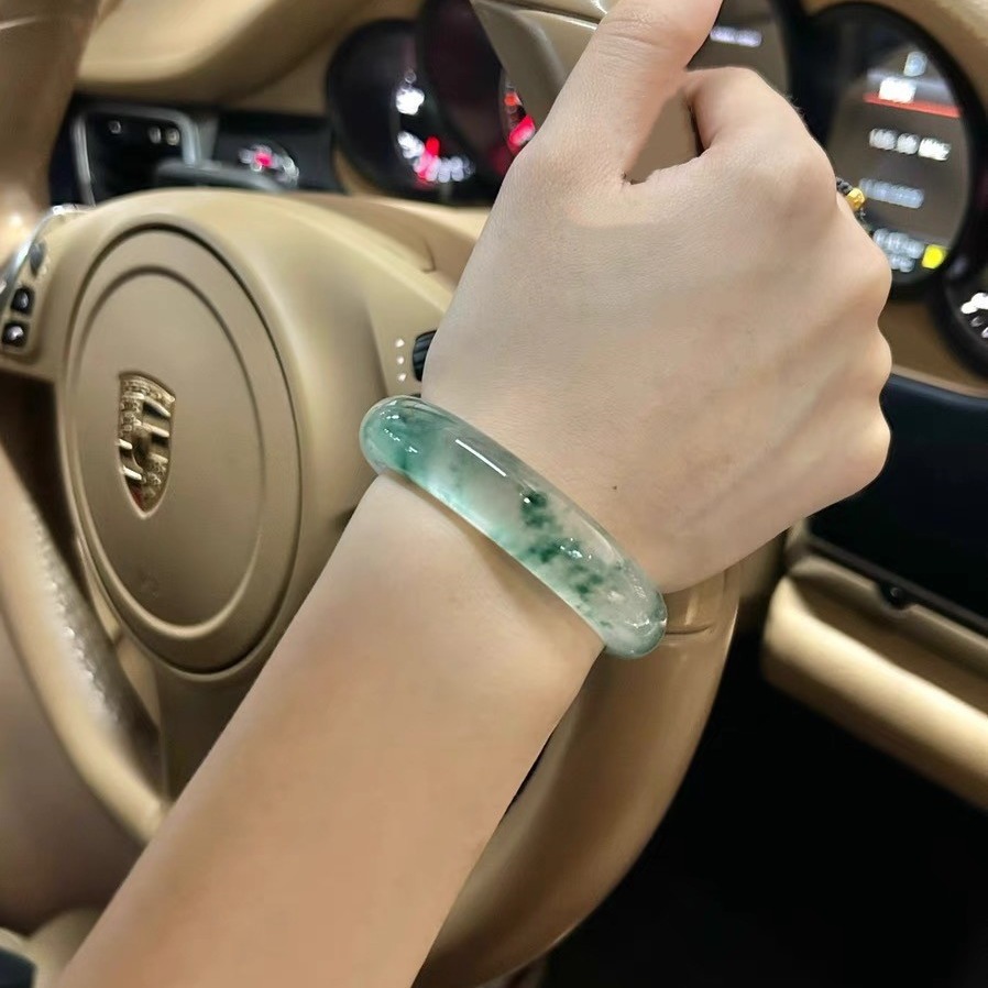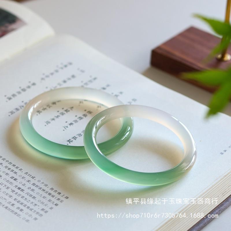 【半山半水】天然馬料氷漂緑瑪瑙ブレスレット女性翡翠色半緑半白玉髄玉腕輪
