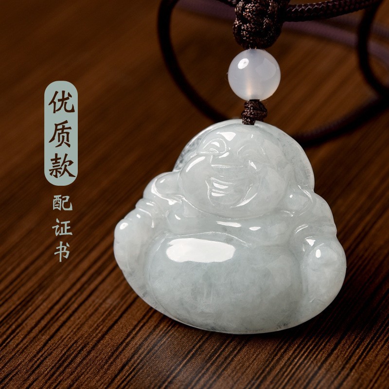 天然翡翠弥勒仏ペンダントミャンマー翡翠a品大腹笑仏ネックレス仏公玉ペンダント男女