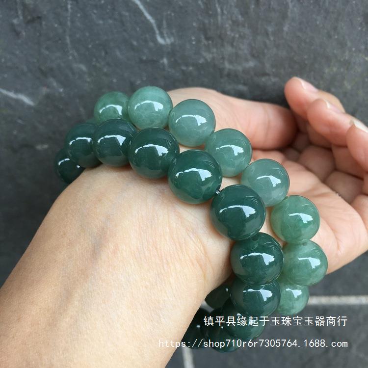 ミャンマー翡翠a品氷モチモチ種油青珠ブレスレットカップル金13mm丸珠ブレスレット手串卸売り