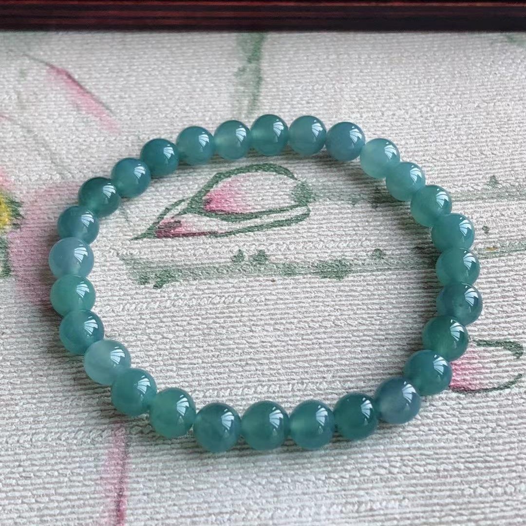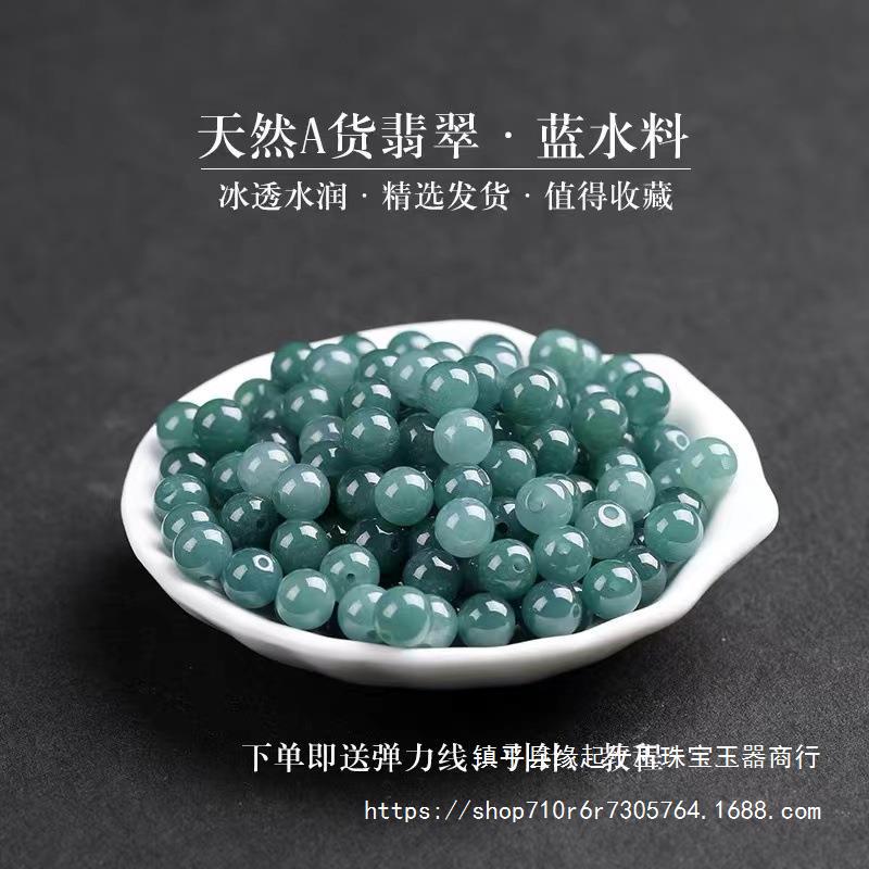天然翡翠氷種藍水繊細水潤女史翡翠ブレスレット手串直播供源卸売り単輪ブレスレット