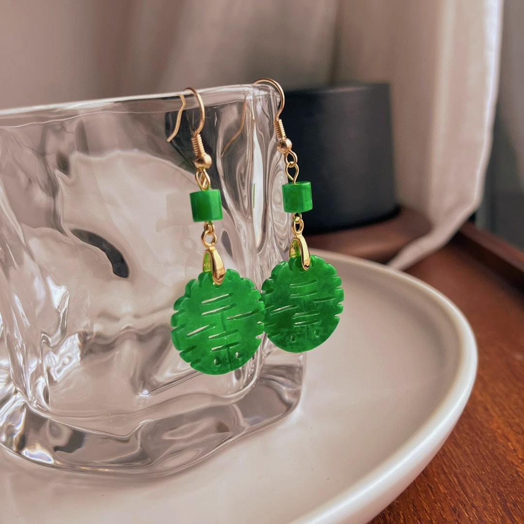 中国風レトロ人工ドライブルー中国風チャイナドレス女性イヤリング