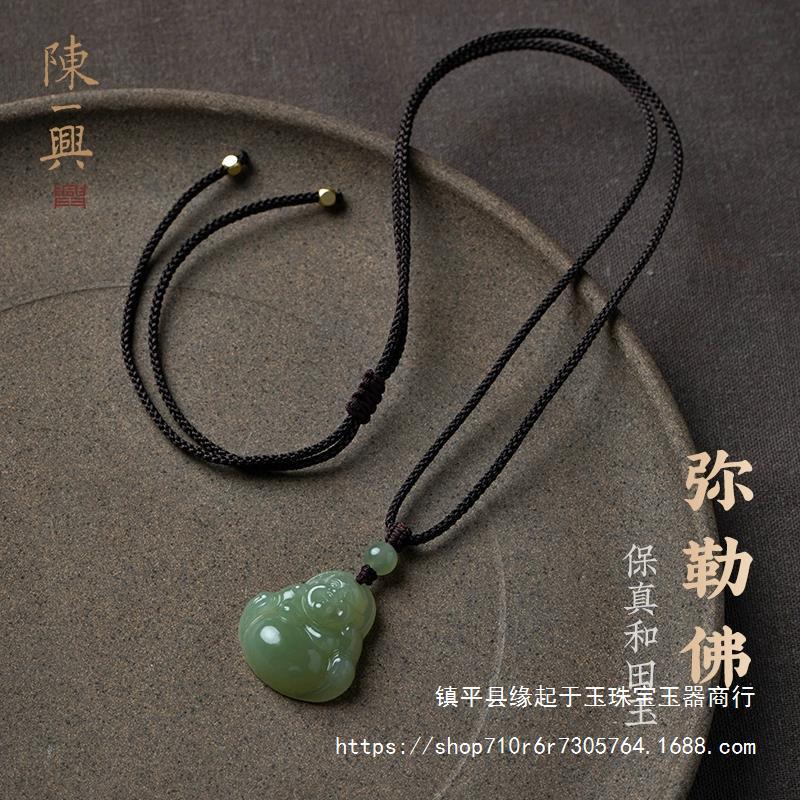 一興保真天然和田青玉弥勒仏ペンダント女性玉ペンダントネックレス小仏公玉玉ペンダント