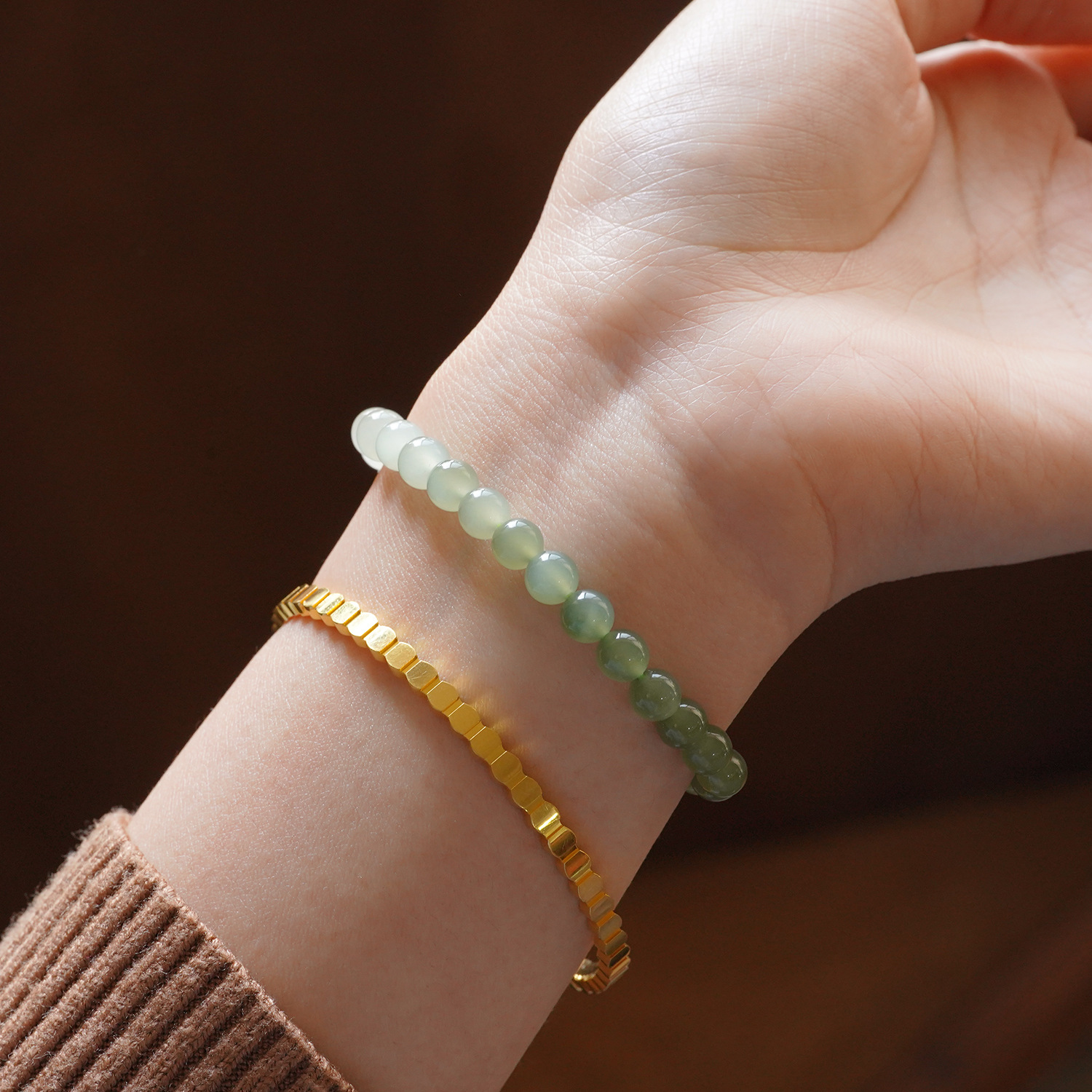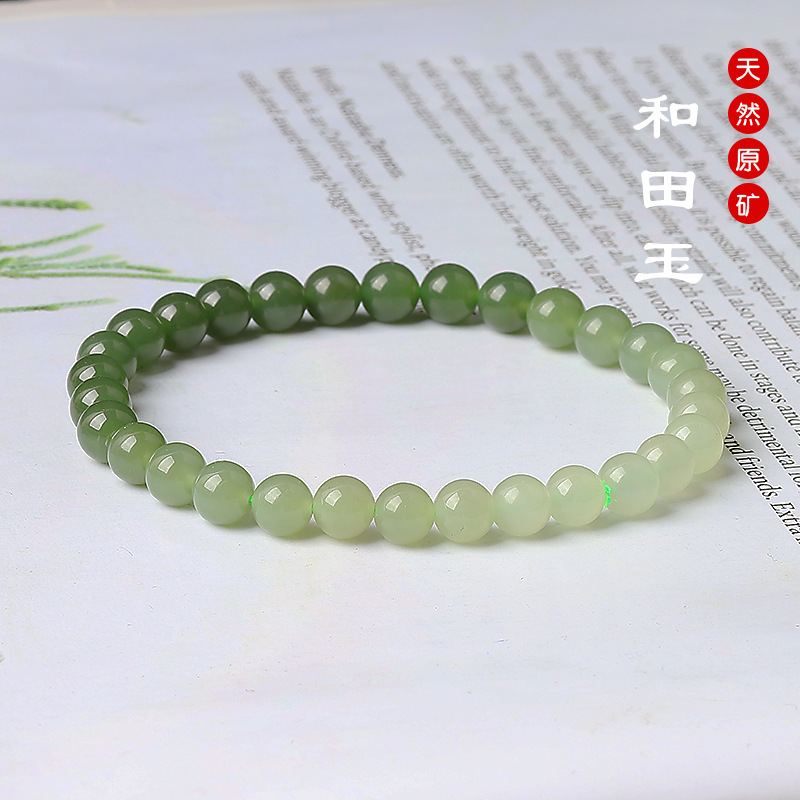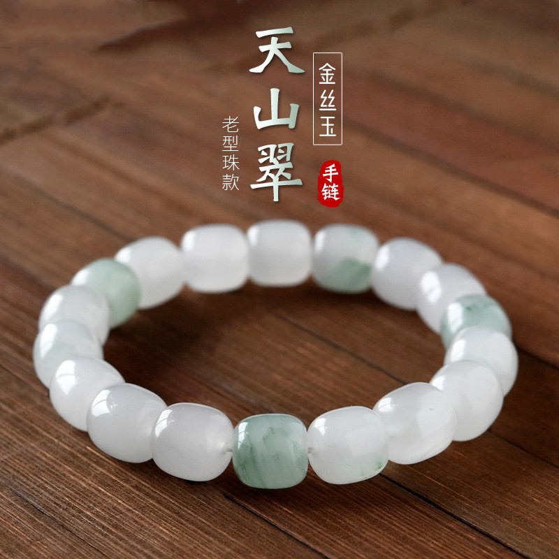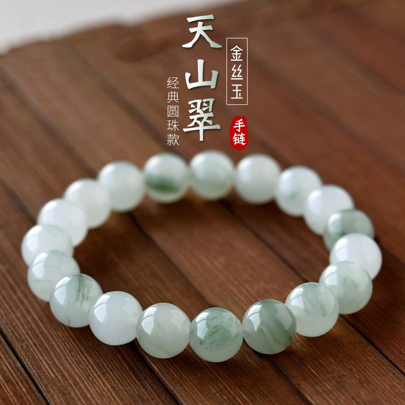 天山翠ブレスレット女男6-14mm新疆金糸玉翡翠色玉白玉漂翠珠散珠手串