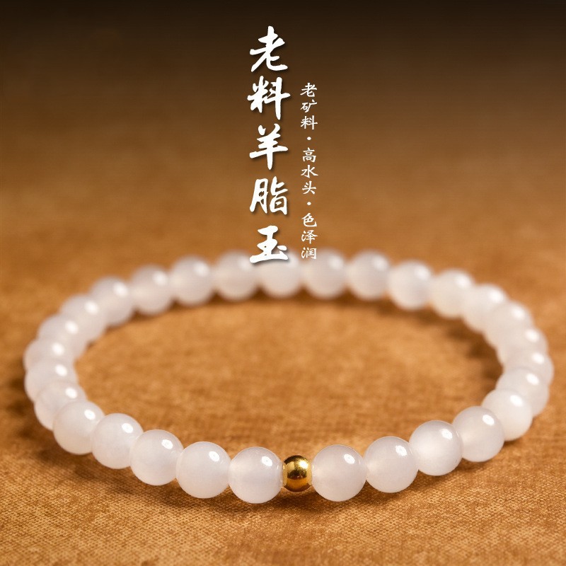 天然羊脂白和田玉手串女白玉珠散珠玉玉ブレスレットプレゼントジュエリー直播代