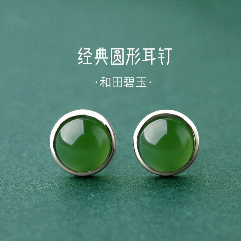 天然和田玉碧玉ピアス女性純銀ピアスグリーン玉小衆デザイン感イヤリング新ファッション