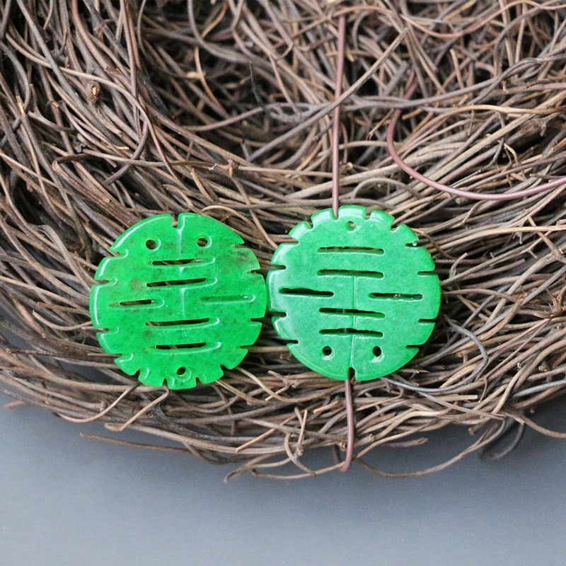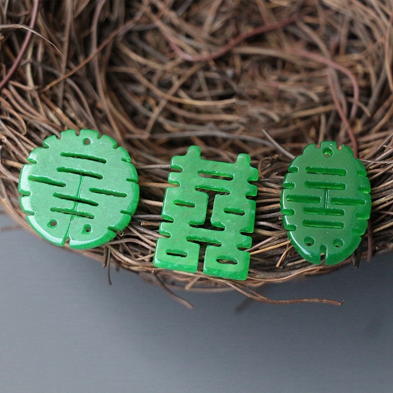 乾青翡翠円双喜卸売り乾青緑喜字diyアクセサリー玉玉器部品卸売り