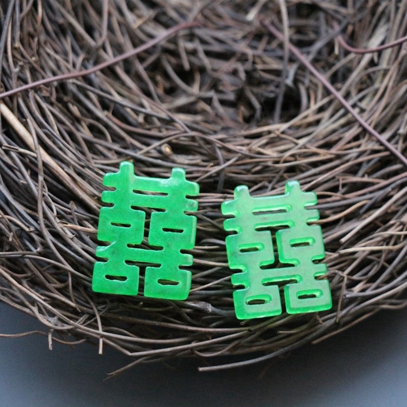 乾青翡翠喜字散珠卸売りdiyイヤリング双喜ネックレスブレスレット玉アクセサリーメーカー卸売り