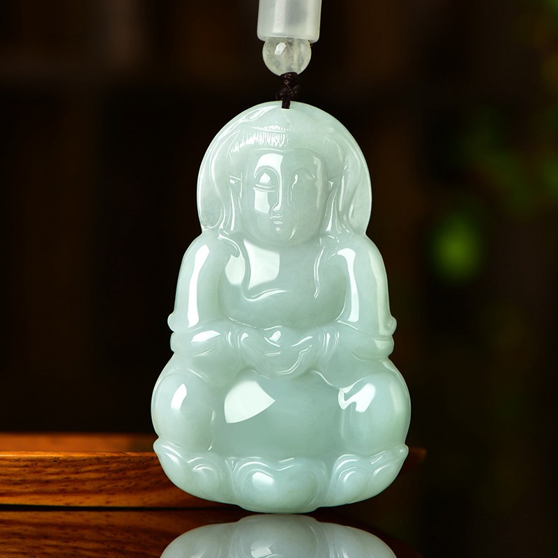 天然ミャンマー翡翠観音ペンダントa品氷種笑仏男金玉佩玉玉菩薩玉ペンダントネックレスペンダント