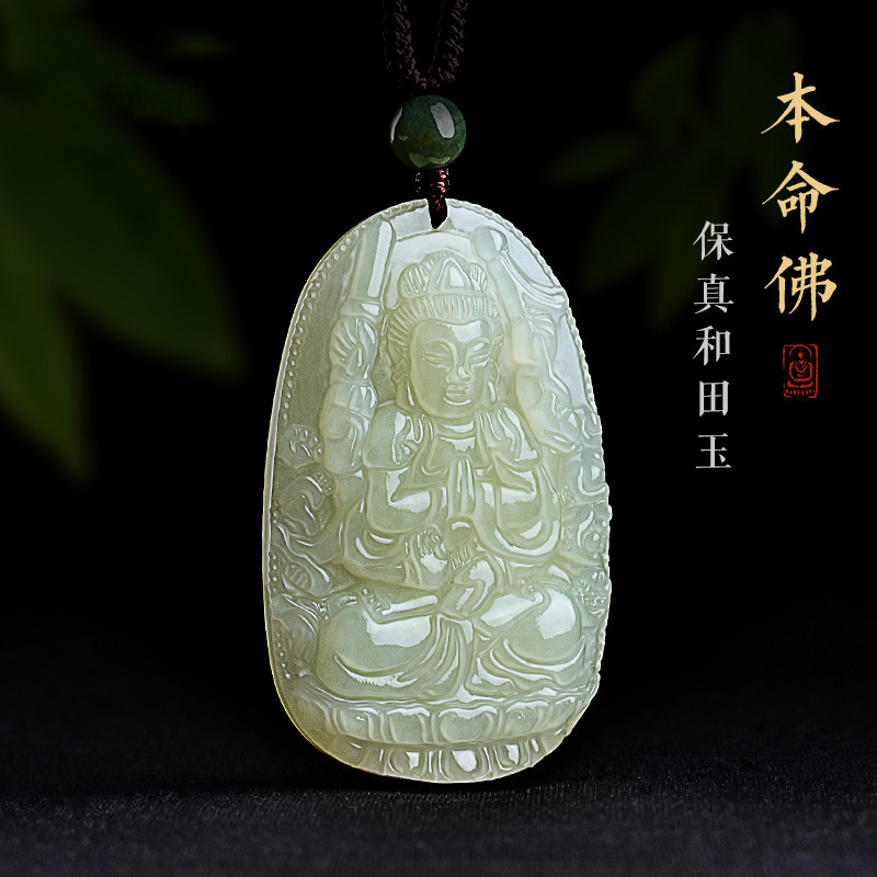 新疆和田玉守護神ペンダント白玉十二生肖本命仏玉ペンダント直播ソース卸売り