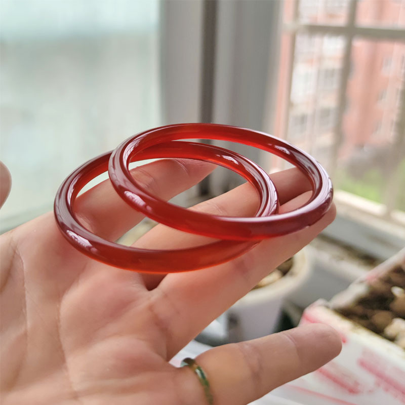 細い丸い美人の腕輪のワインの赤い瑪瑙の腕輪の女性の項の深い赤色の玉髄の腕輪の国風の漢服の卸売り