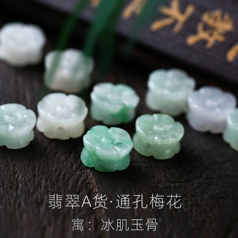 ミャンマー翡翠a品氷モチモチ種両面梅アクセサリー通孔小串飾りdiy玉アクセサリーネックレストップビーズ