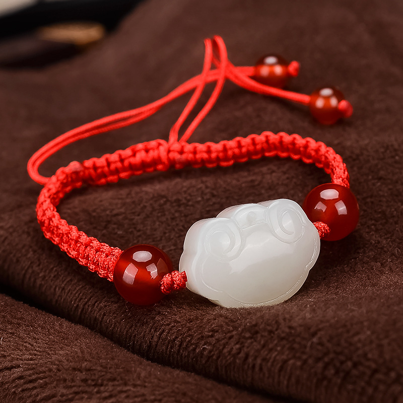天然新疆和田玉ブレスレット白玉宝宝錠平安手串男女金紅縄花ブレスレット