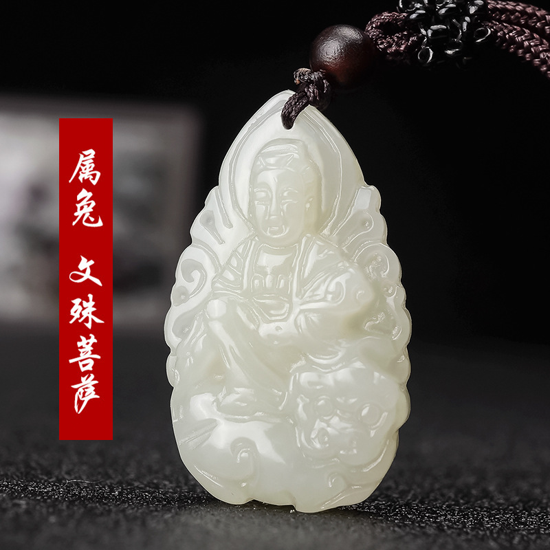 天然新疆和田玉白玉十二生肖仏像八大守護神本命仏ペンダント男女卸売り