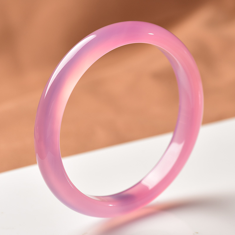 粉瑪瑙のブレスレットの天然の氷種のスミレの玉髄の細い条の少女のレイシの冷凍は玉の腕輪の生放送の卸売りになります。
