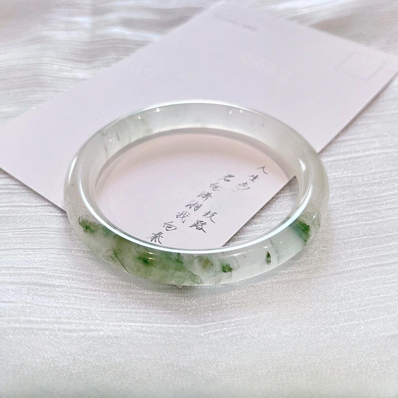 天然新疆天山翡翠ブレスレット、半山半水ブレスレット、氷もち種フラワーフローティングファインラウンドバー女性用ブレスレット