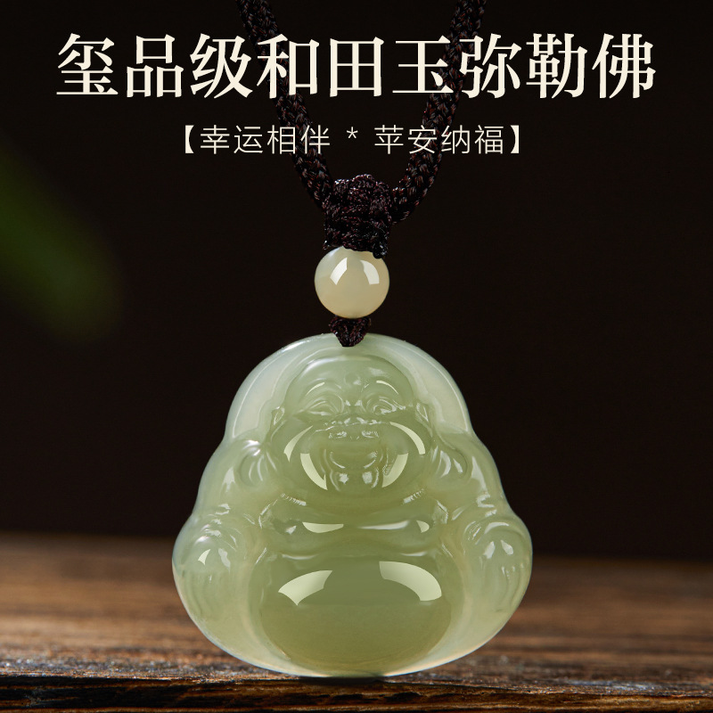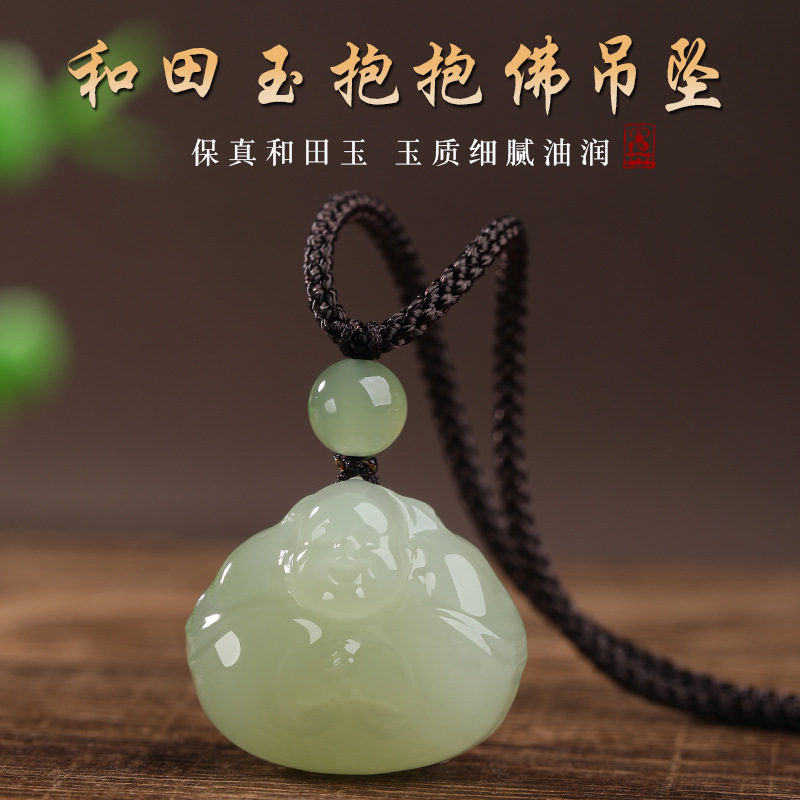 天然新疆と田玉抱擁仏ネックレス晴水料如意弥勒仏笑仏玉ペンダントカップルプレゼント
