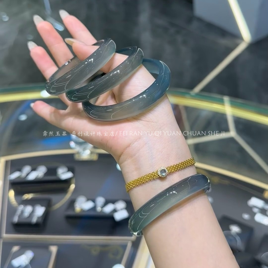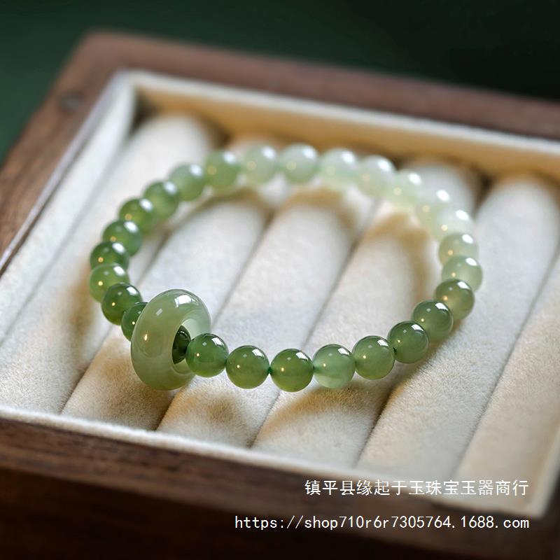 半山半水瑪瑙美人腕輪翡翠色天然グラデーション油青瑪瑙ブレスレット