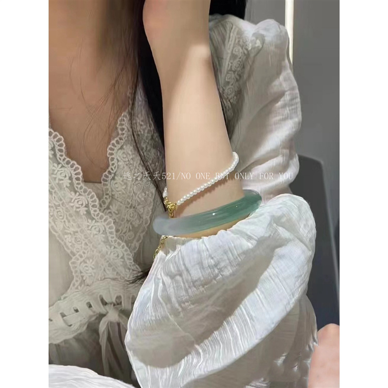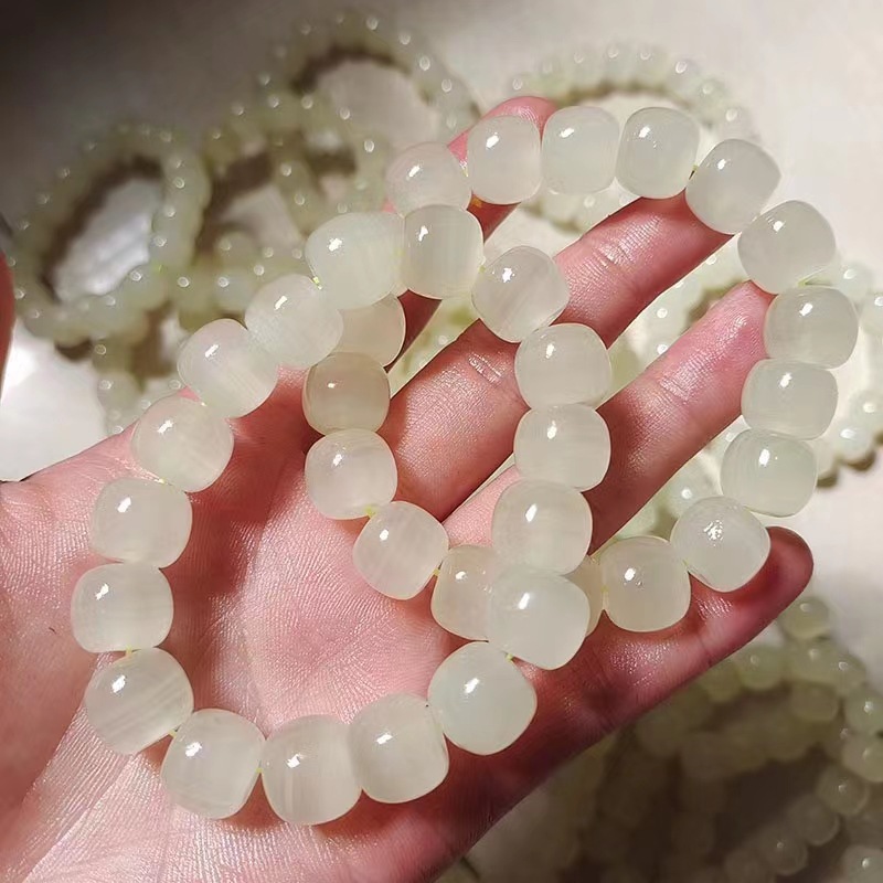 高氷種水泡玉ブレスレット天然瑪瑙ブレスレット白月光玉腕輪氷透玉髄白色石英岩玉女